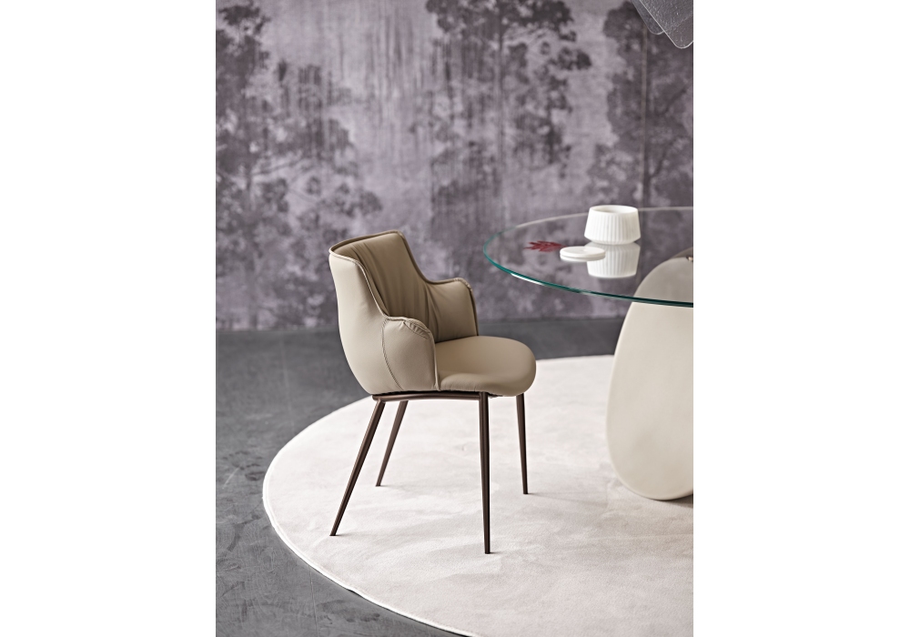 Rihanna ML diseñada por Luca Signoretti para Cattelan Italia es una silla con estructura en acero barnizado gofrado y revestimiento disponible en tejido, synthetic nubuck, micro nubuck, ecopiel o piel.