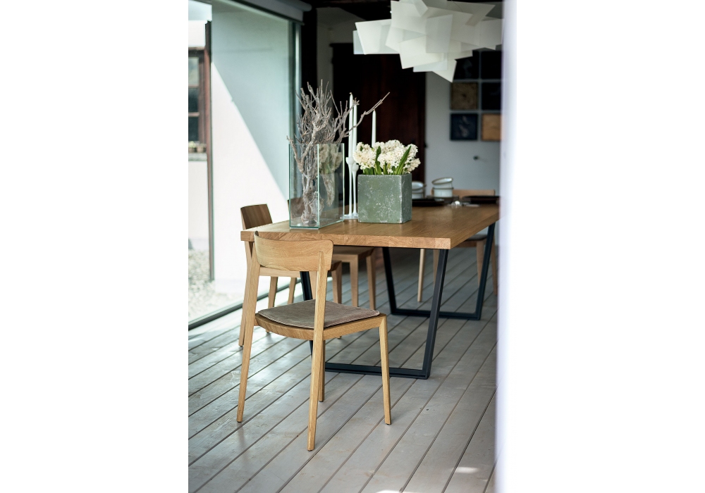Mia Leather diseñada por C.R. & S. Riva 1920 es una silla realizada en madera maciza, con cojín de asiento acolchado, tapizada en piel e incrustada en la estructura.