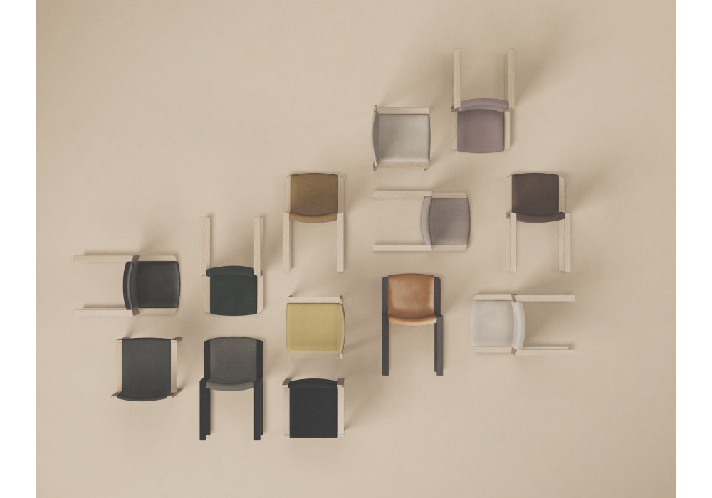 Chair 300 diseñada por Joe Colombo para Karakter es una silla realizada con estructura de roble macizo lacado transparente, espuma HR en asiento y respaldo, tapizado en piel o tela y pies de plástico. Disponible en diferentes acabados.
