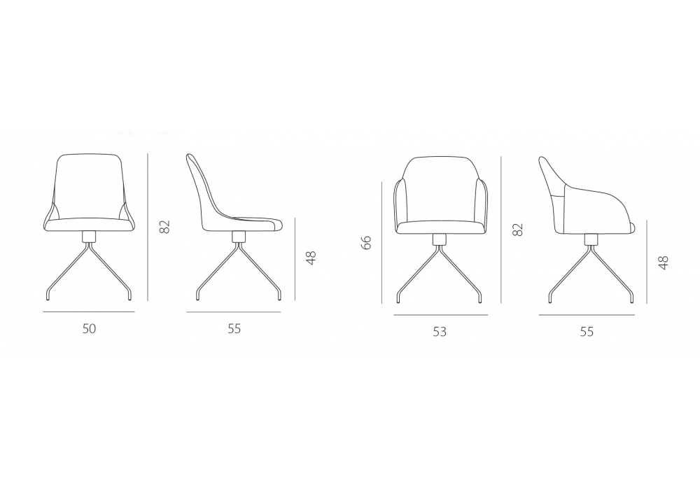 Sofia diseñada por Riflessi es una silla giratoria con estructura de metal pintado. Acolchado de poliuretano flexible moldeado en frío y funda no desenfundable de tejido o piel. Bajo pedido cuerpo exterior en Satin. Disponible en diferentes modelos.