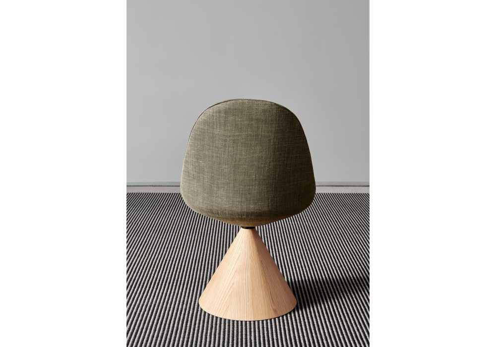 Romby diseñada por GamFratesi para Porro es una silla giratoria realizada con base en fresno macizo y asiento acolchado y tapizado en tejido o piel.