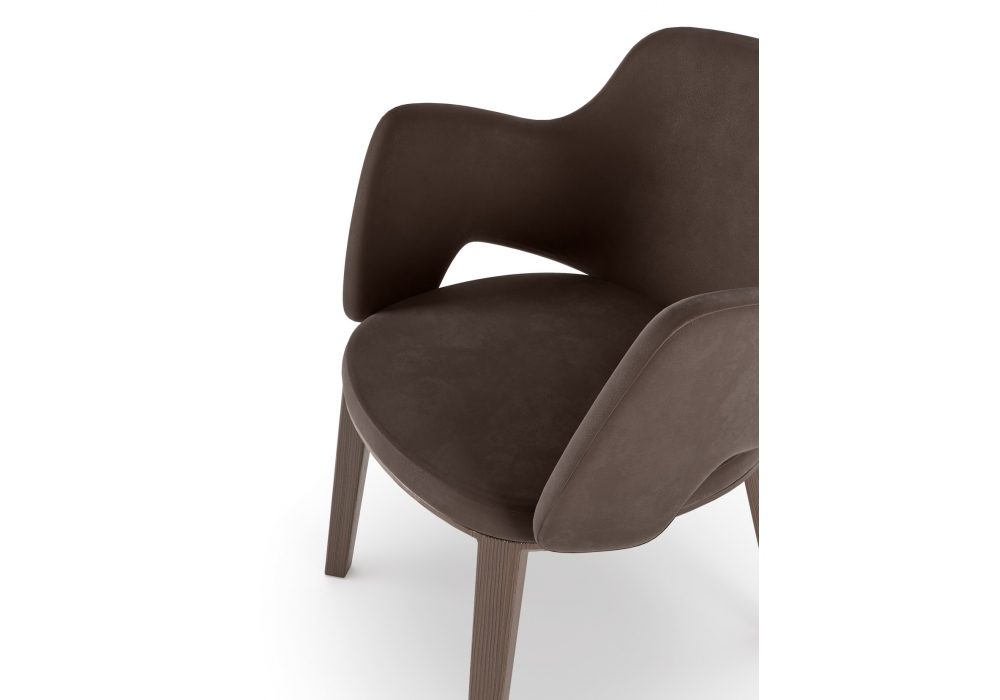Newton diseñada por Studio Klass para Fiam es una silla con brazos. Estructura de roble disponible en acabado tabaco o lacado negro a poro abierto. Asiento y respaldo revestidos en piel o nobuck.