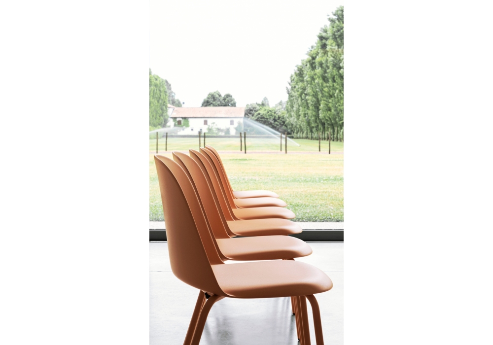 Mariolina Basic diseñada por E-ggs para Miniforms es una silla con base en metal pintado, cobre o galvanizado. Carcasa de polipropileno en el mismo acabado que la base. Disponible en diferentes acabados.
