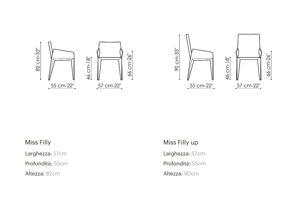 Miss Filly diseñada por Bartoli Design para Bonaldo es una silla acolchada completamente revestida en tejido, piel o ecopiel. Disponible en varios modelos. Las patas están disponibles en el mismo tapizado que el asiento o en metal pintado mate.