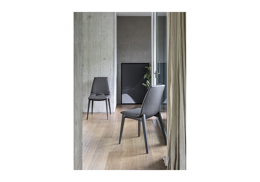 Ninette diseñada por Dondoli & Pocci para Bonaldo es una silla con estructura en acero y acolchado en caucho indeformable de alta densidad. El tapizado está disponible en diferentes tejidos y colores, las patas son de madera maciza de fresno en varios acabados.