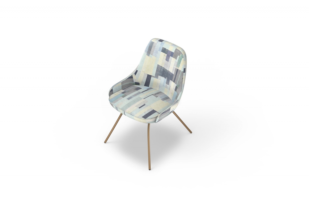 Eyre diseñada por Momenti Lab para Momenti es una silla con pies tubulares de metal con acabado lacado en los colores: blanco, negro, bronce y latón. Carcasa del asiento con acolchado de espuma de poliuretano ignífugo. Costuras de pico de ganso. Funda no extraíble. Disponible en la versión con o sin reposabrazos.