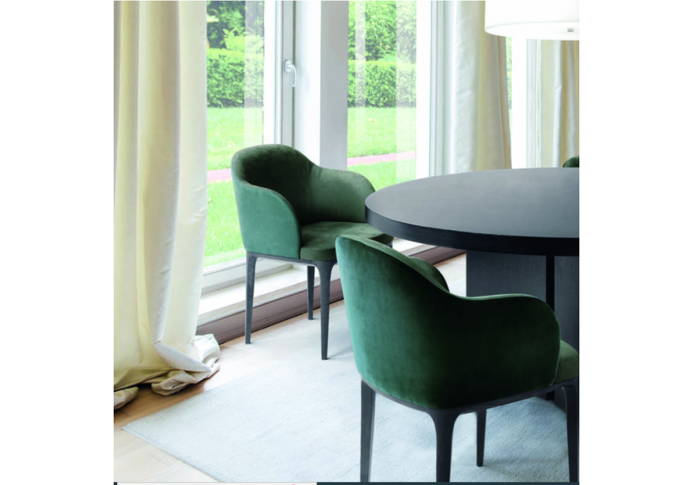 Anita diseñada por Marac Lab es una silla con estructura en abeto y contrachapado, con cinchas elásticas. Patas en madera maciza de fresno, color natural, color moka, color nogal o acabado "ahumado". Tapizado fijo en tejido y piel en diferentes acabados.