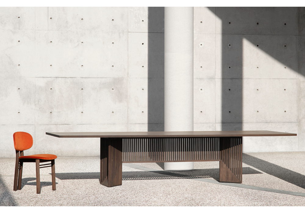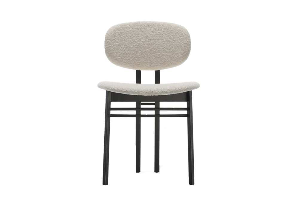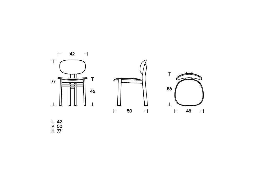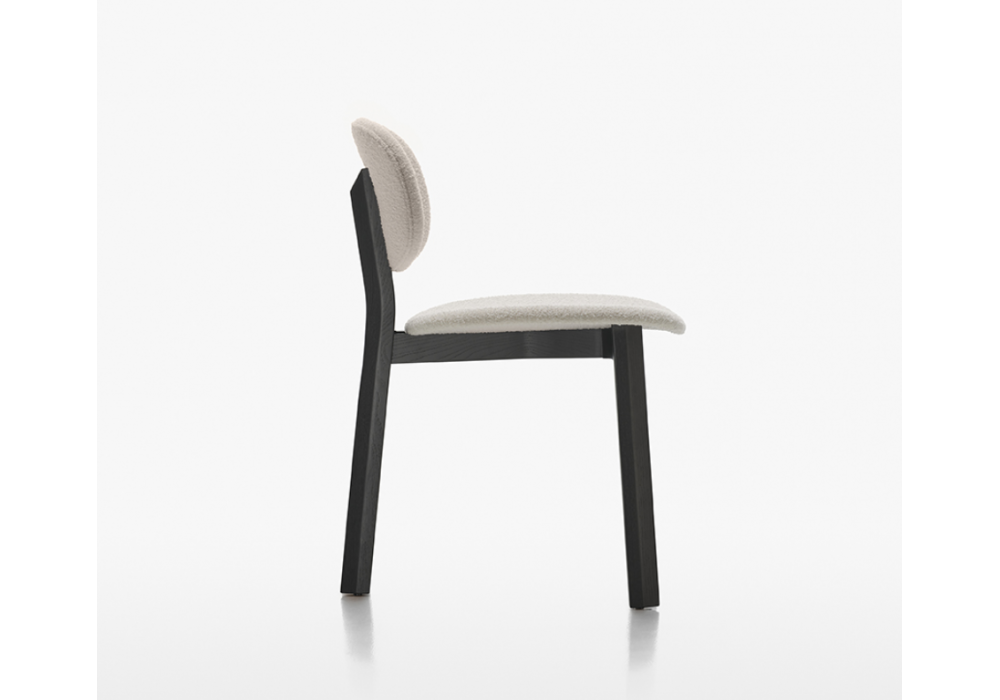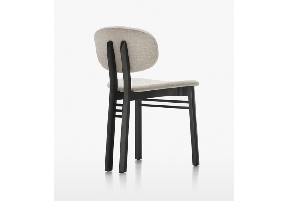 Med diseñada por Lodovico Acerbis y Giotto Stoppino para Acerbis es una silla con estructura en madera maciza de fresno en los colores negro y nogal oscuro. Respaldo y asiento de contrachapado curvado, con acolchado de poliuretano y tapizado de tela en diferentes acabados. El tapizado no es desenfundable y cubre completamente el respaldo y el asiento.