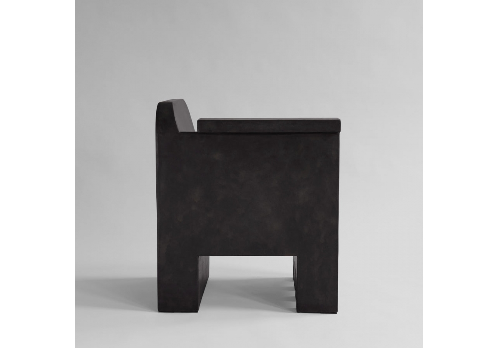 Kamodo diseñada por Kristian Sofus Hansen & Tommy Hyldahl para 101 Copenhagen es una silla realizada en fibra de cemento, disponible en acabado color café.