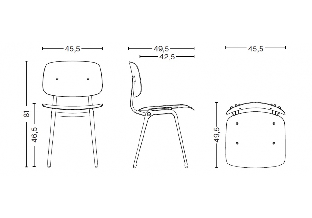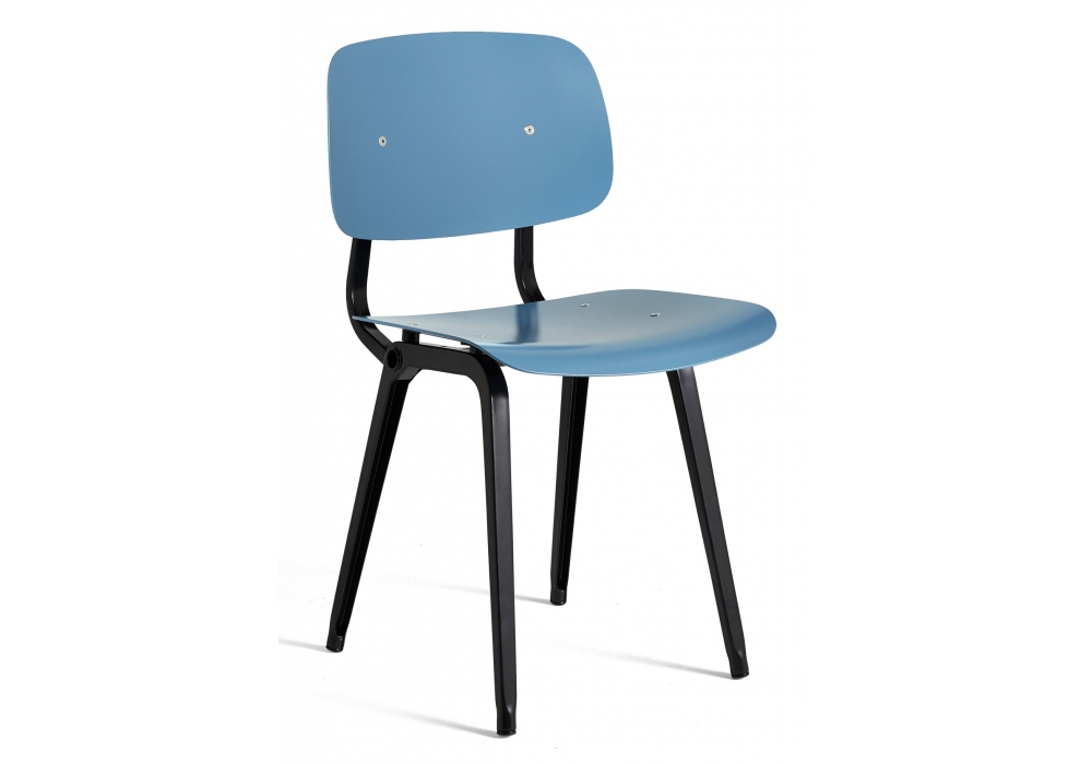 Revolt diseñada por Friso Kramer para Hay es una silla con estructura en chapa de acero pintado en polvo y estructura en ABS reciclado. Disponible en diferentes acabados.