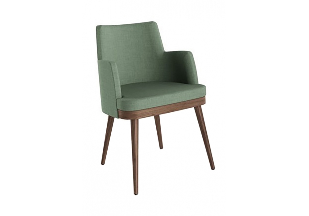 Kelly diseñada por Area44 para Gual Design es una silla con estructura en madera de fresno teñida con pintura poliuretano color nogal. Base y respaldo del asiento en MDF recubierto con espuma de alta densidad y acolchado. Forro de tela. Disponible en diferentes medidas y acabados.