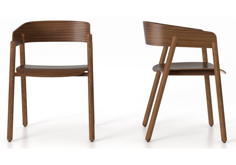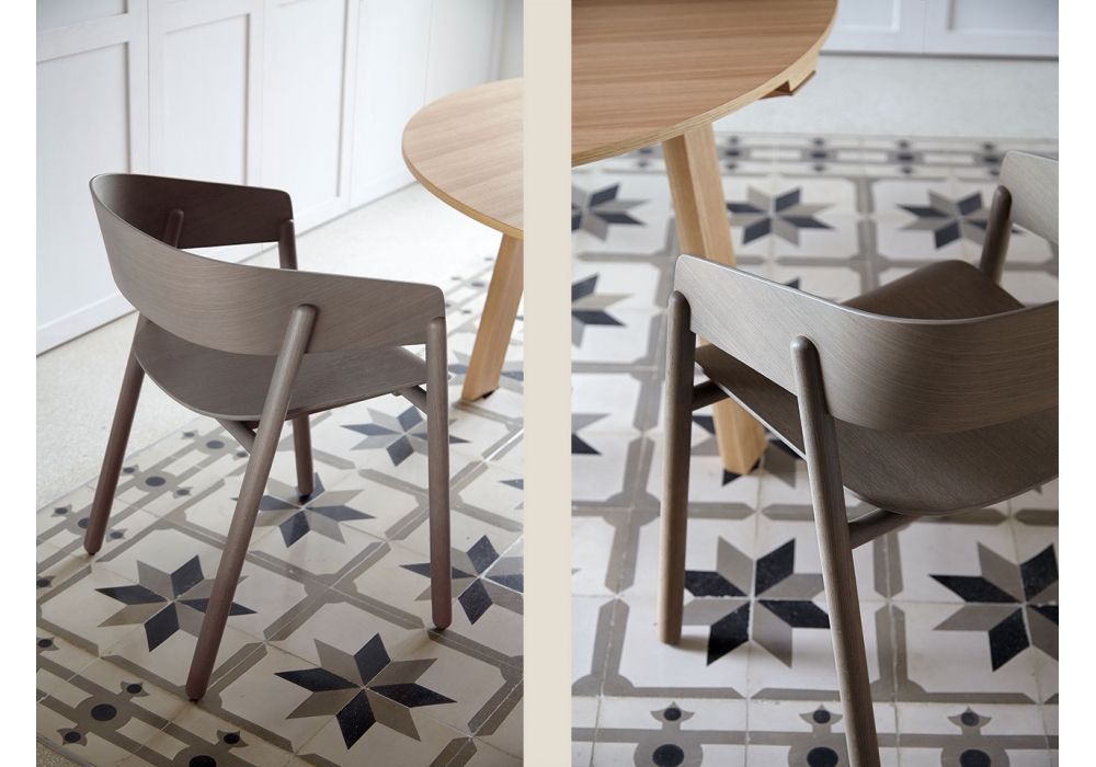 Mava diseñada por Stephanie Jasny para Punt es una silla con estructura en roble o nogal. Disponible en diferentes acabados.