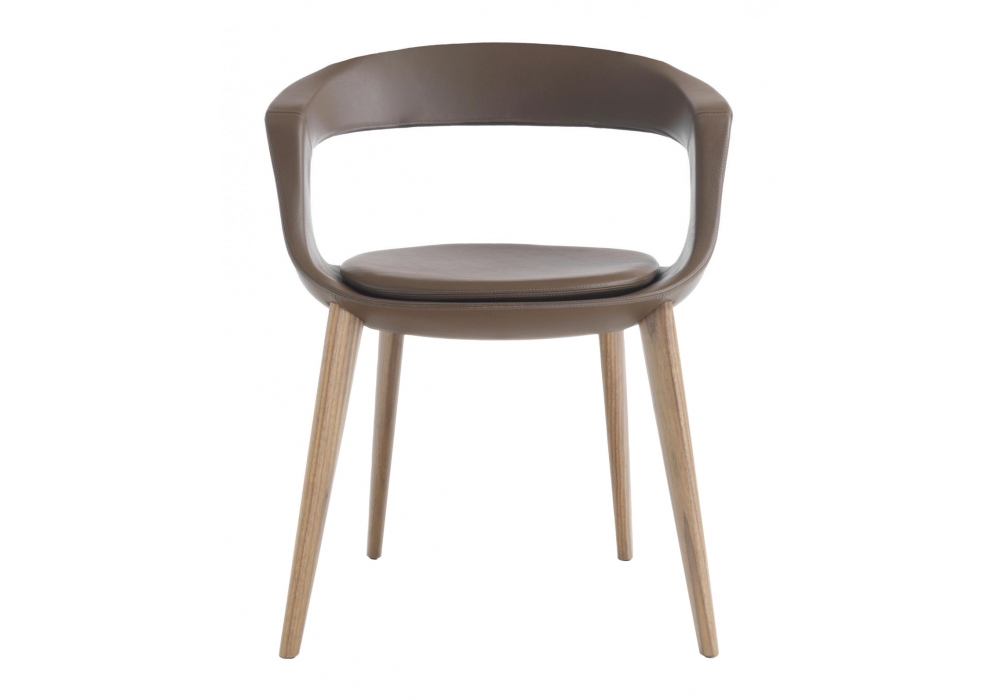 Frenchkiss Wood diseñada por Stefano Bigi para Enrico Pellizzoni es una silla con patas de madera, carcasa de metal, espuma de poliuretano, tapizada en piel, ecopiel o fieltro. Almohada delgada integrada. Disponible en diferentes acabados y modelos.