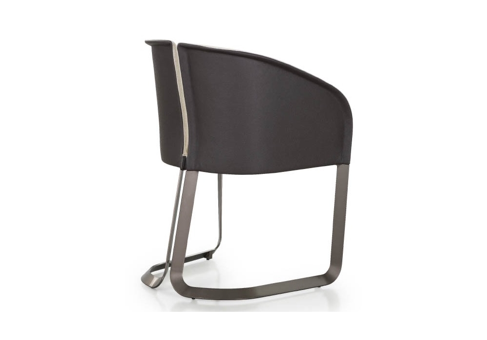 Milano diseñada por Blengini Ghirardelli para Turri es una silla con base curvada en metal acabado níquel cepillado con pies en material plástico. Estructura de madera contrachapada acolchada con espuma de poliuretano multidensidad con revestimientos no desenfundables en diferentes tejidos o pieles.