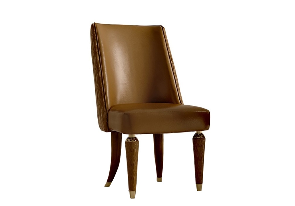 Numero Tre diseñada por Roberto Serio para Turri es una silla con estructura en madera contrachapada y madera maciza tapizada con espuma de poliuretano multidensidad. Tapizados en diferentes tejidos o pieles no desenfundables. Las patas están fabricadas en madera maciza y recubiertas de piel bordada a juego con el respaldo. En la parte trasera hay un asa de cuero trenzado y metal dorado. Disponible en la versión con o sin reposabrazos.