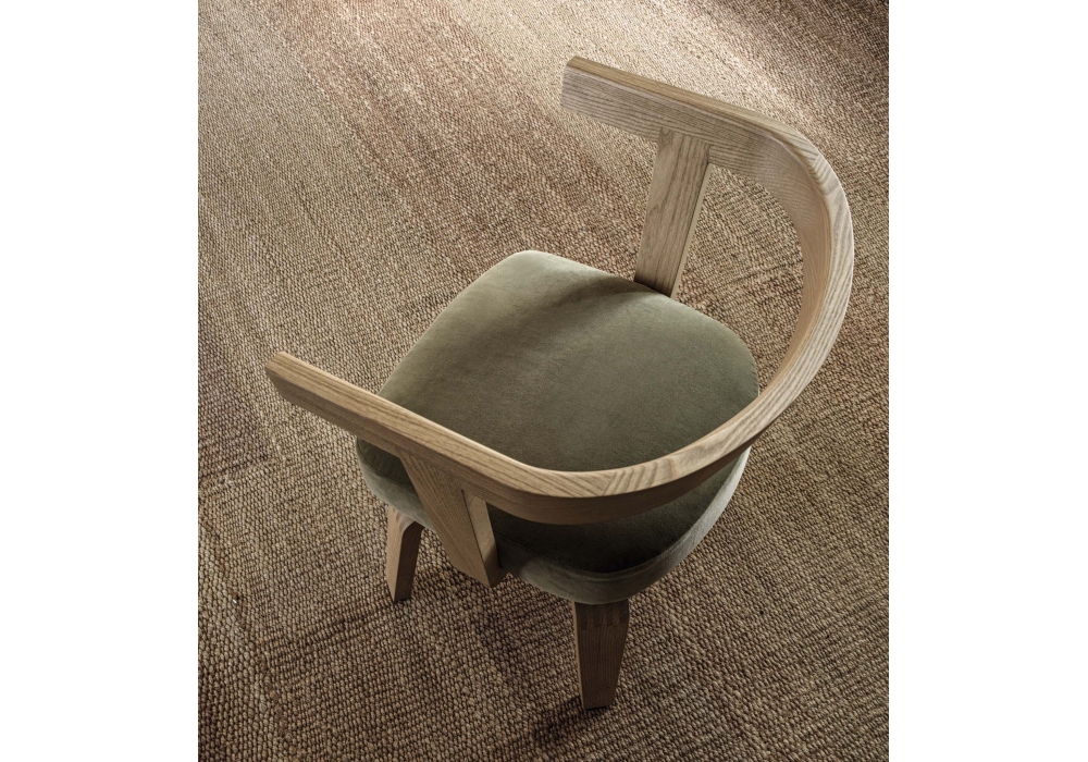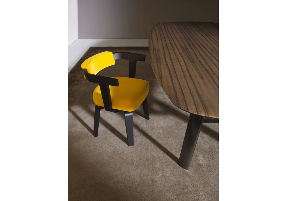 Porta Volta diseñada por Herzog & de Meuron para Molteni&C es una silla realizada con estructura en fresno macizo teñido o Nogal Canaletto. Revestimiento en tela, piel o terciopelo mohair edición especial. Respaldo acolchado opcional. Disponible en 2 modelos.
