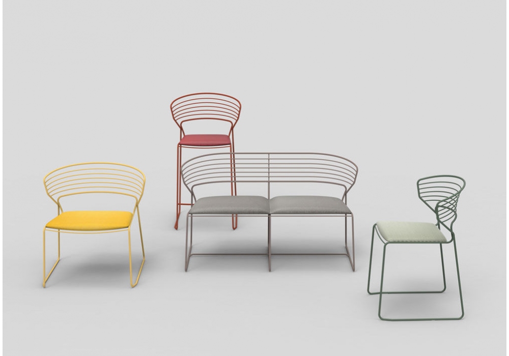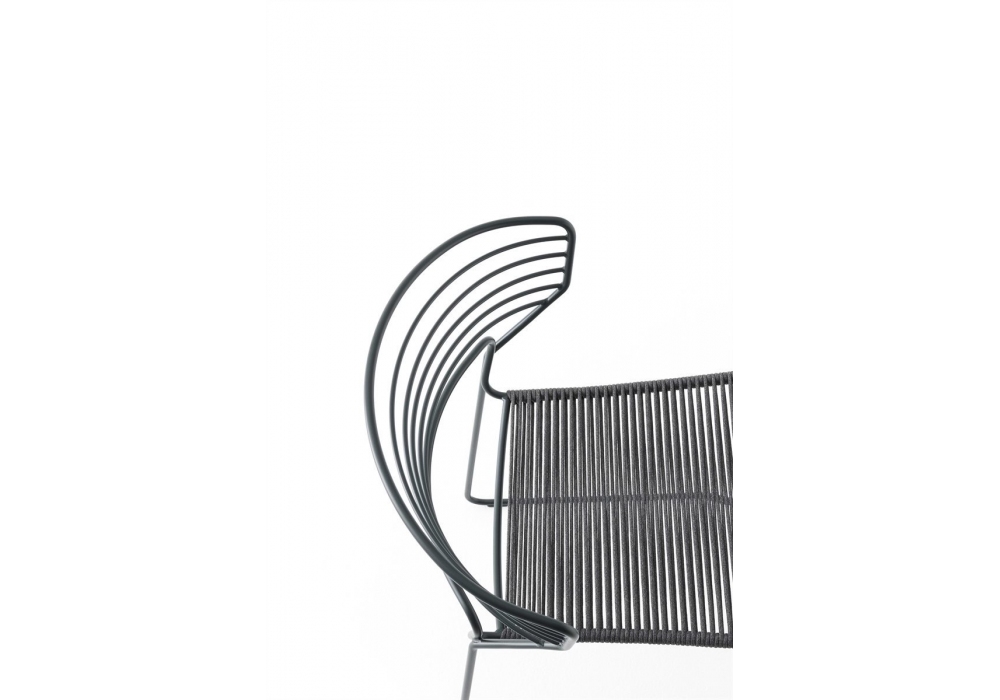 Koki Wire Corda diseñada por Pocci & Dondoli para Desalto es una silla con estructura de varilla de acero pintado en polvo, apta para uso en exteriores. Asiento en cuerda de poliéster. Disponible en diferentes acabados.