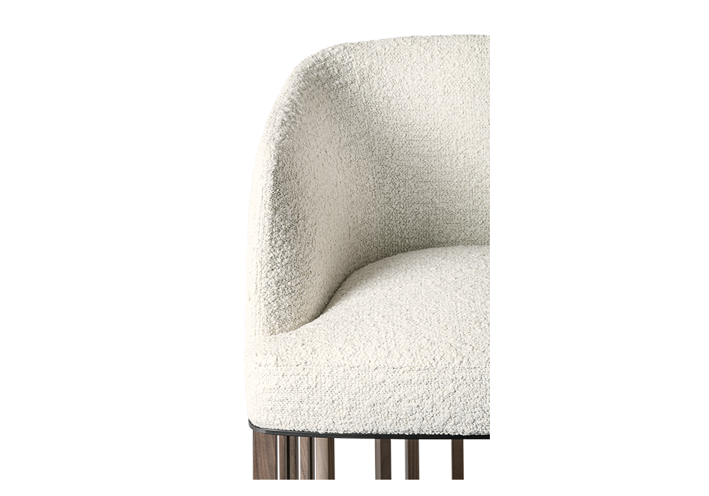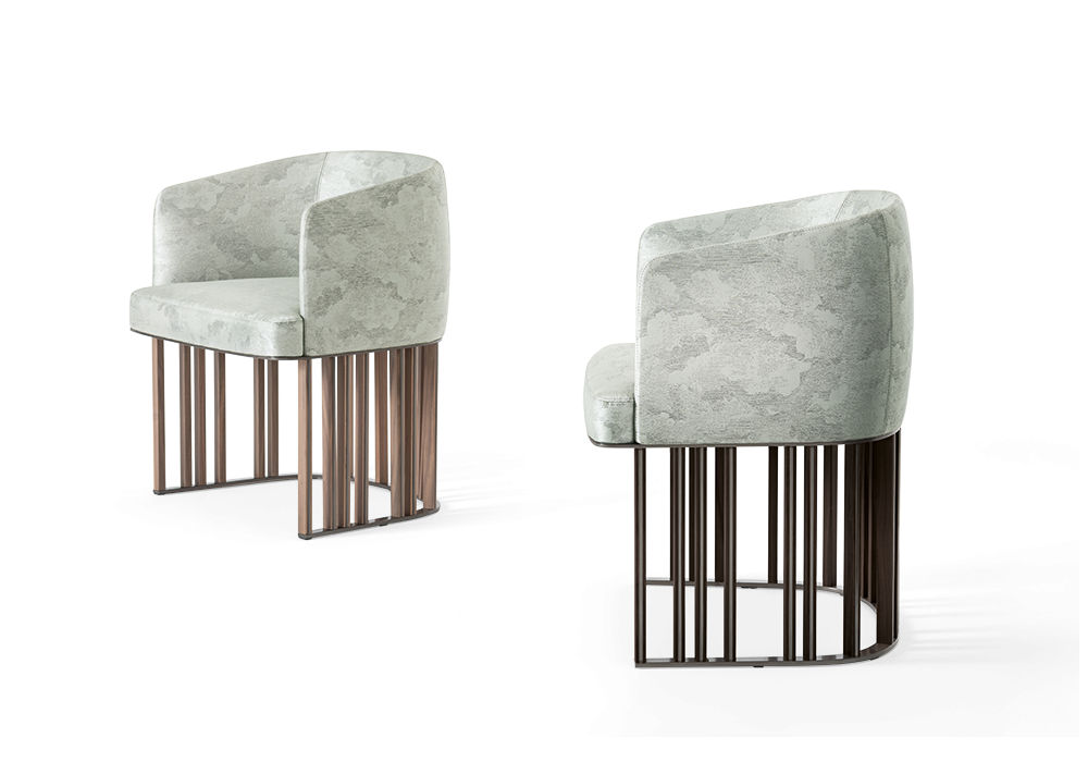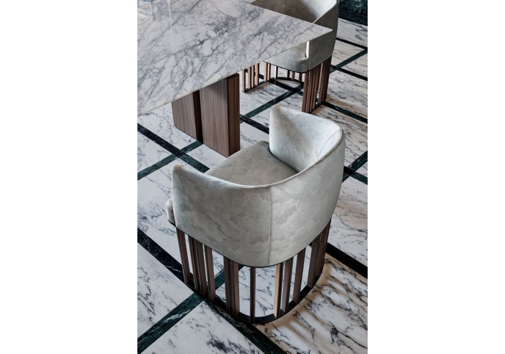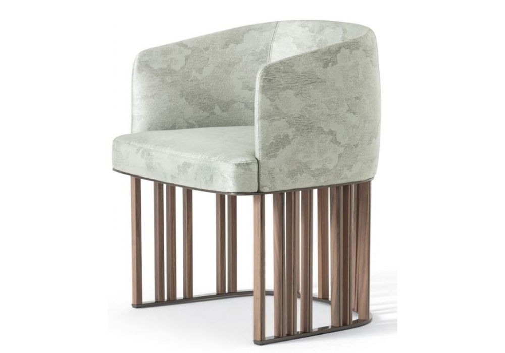 Hero diseñada por Carlo Colombo para Giorgetti es una silla con estructura en nogal Canaletto en diferentes acabados. La tapicería está disponible en varios tejidos y colores.