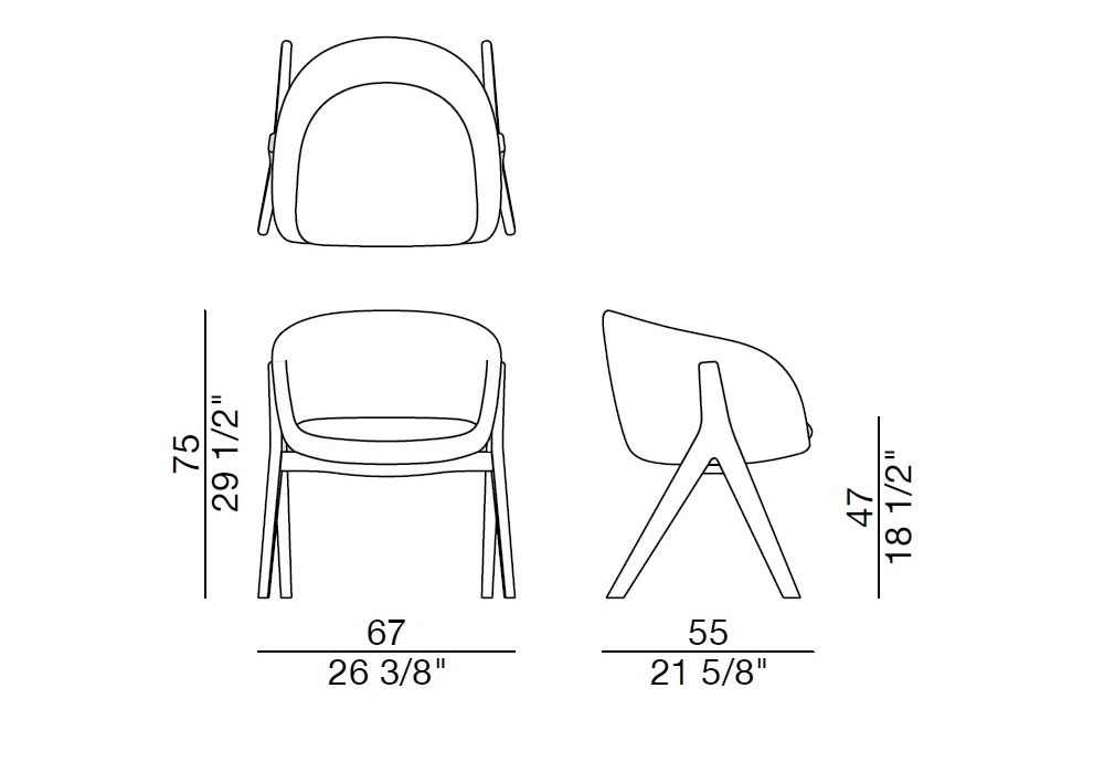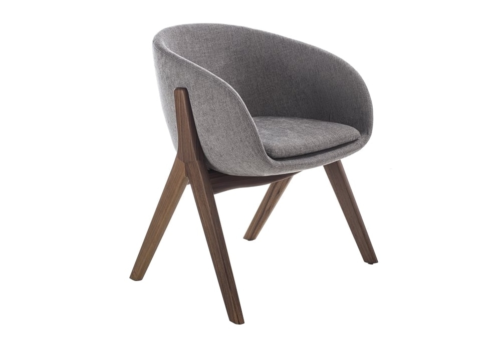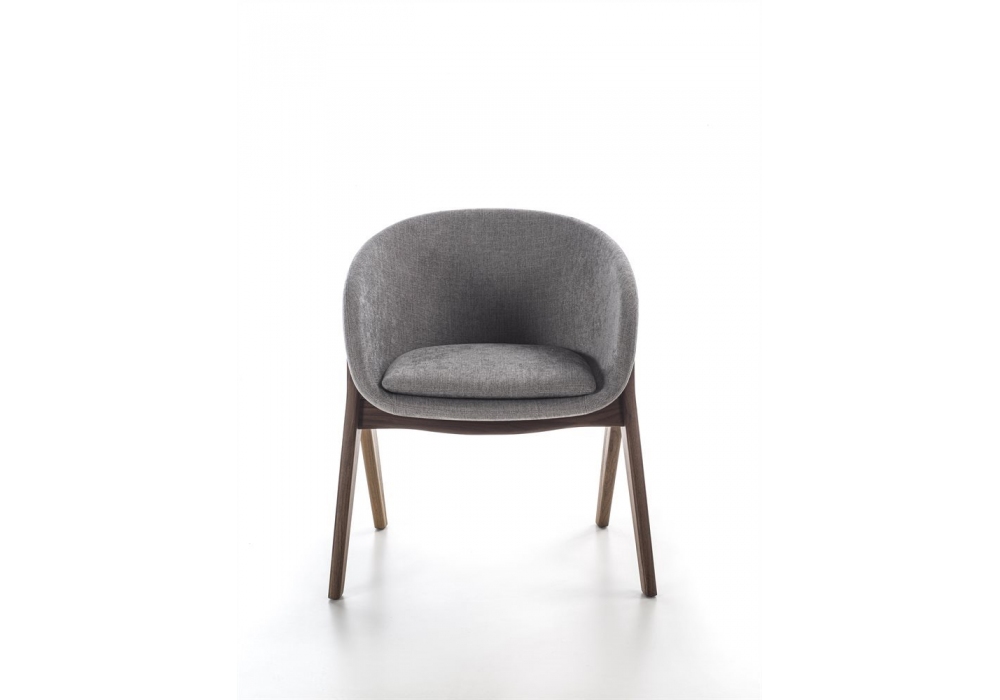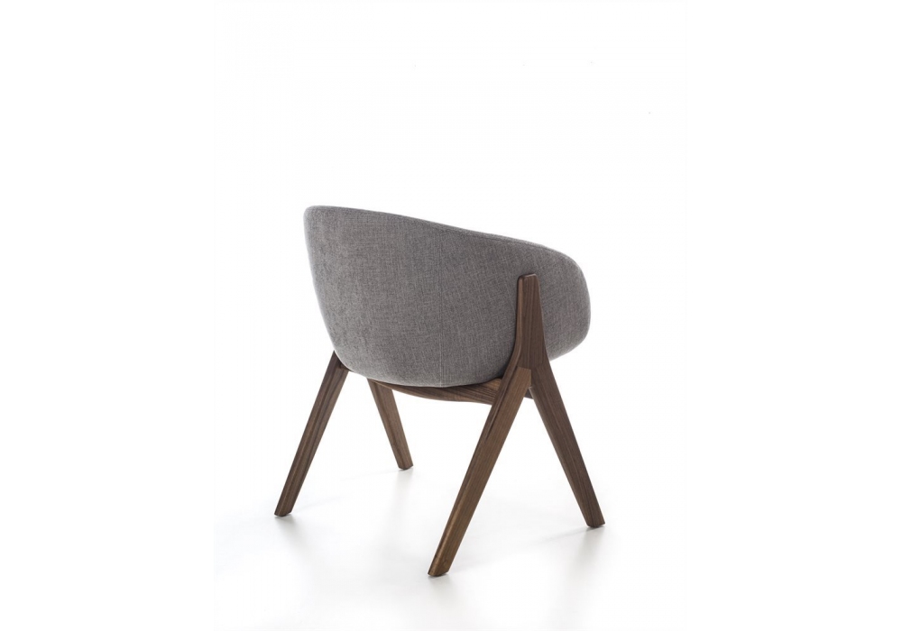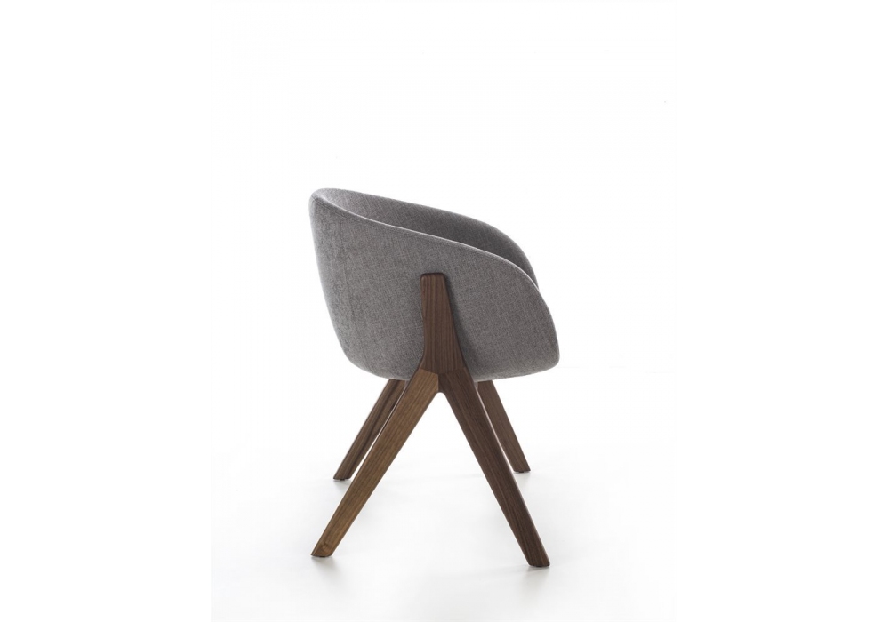 Lambda diseñada por Giuseppe Viganò para Porada es una silla con estructura en fresno macizo o nogal canaletta y tapizado en tejido o piel. Cojín de asiento con funda extraíble.