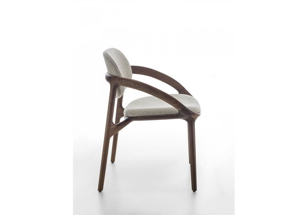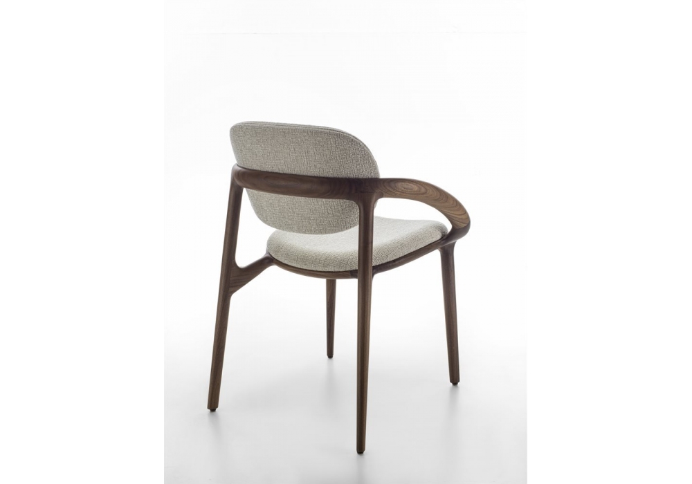 Molly diseñada por Meneghello Paolelli para Porada es una silla con estructura en nogal canaletta macizo y tapizado en tejido o piel.