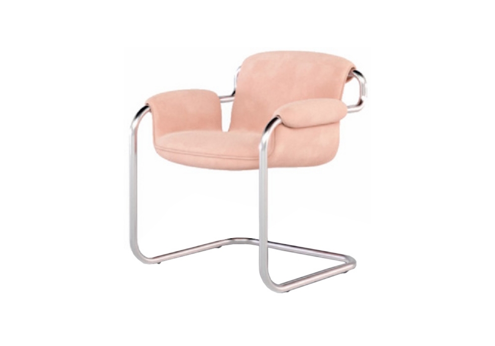 So Far diseñada por Studiopepe para Baxter es una silla con estructura de metal y acolchado en espuma de poliuretano de densidad diferenciada. Ribete decorativo en el mismo tono de la piel. Revestimiento solo en pieles suaves.