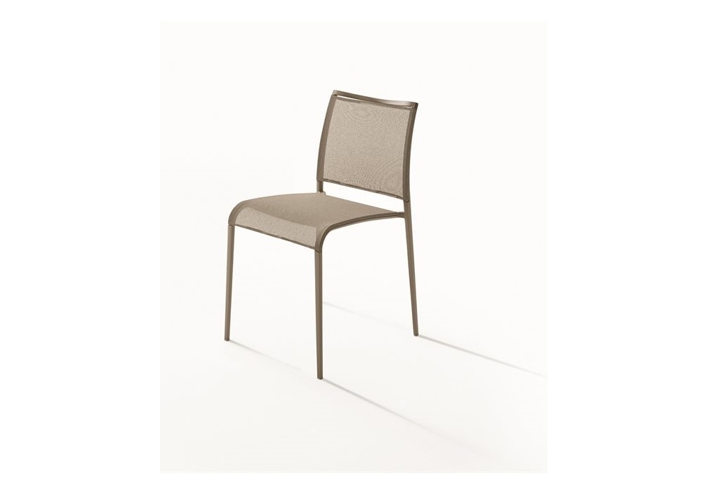 Sand Light diseñada por Pocci e Dondoli para Desalto es una silla apilable con estructura de aluminio inyectado. Asiento y respaldo en malla de poliéster recubierta de PVC (en la versión Canatex la malla está revestida de PVC y cáñamo). Disponible en diferentes acabados y en la versión con o sin reposabrazos.
