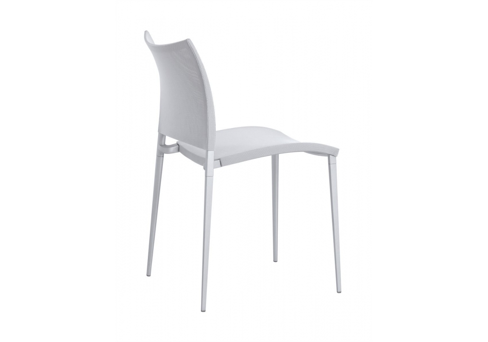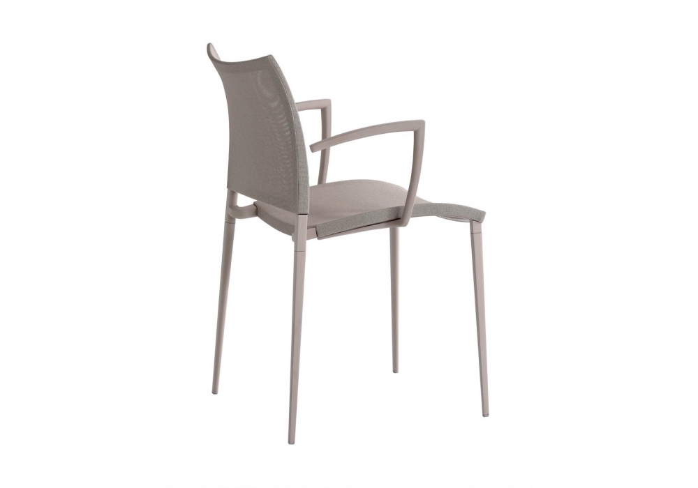 Sand Air diseñada por Pocci e Dondoli para Desalto es una silla apilable con estructura de aluminio inyectado. Asiento y respaldo en malla de poliéster recubierta de PVC (en la versión Canatex la malla está revestida de PVC y cáñamo). Disponible en diferentes acabados y en la versión con o sin reposabrazos.