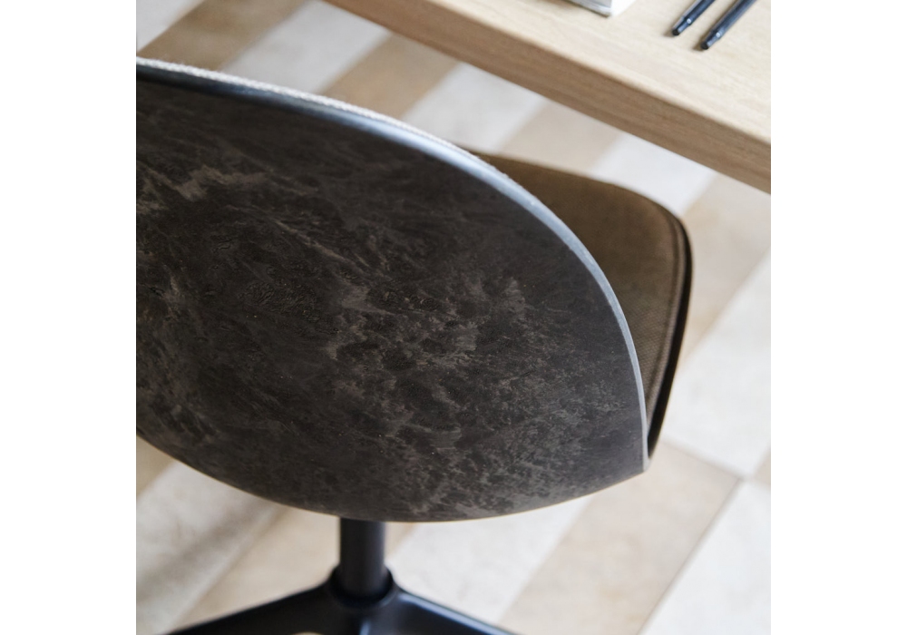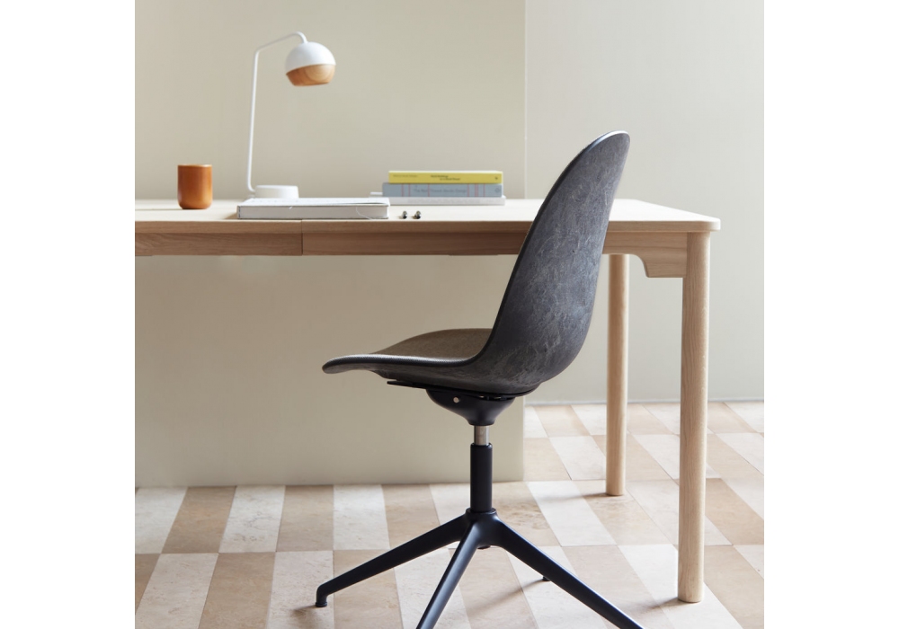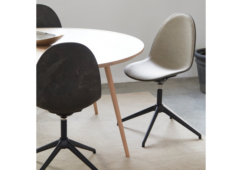 Eternity diseñada por Space Copenhagen para Mater es una silla giratoria acolchada con base en aluminio pintado negro o brillante, asiento en Matek® revestido en tela. Disponible en la versión con revestimiento completo o cubriendo sólo el asiento.