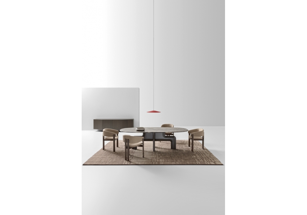 Biarritz diseñada por Dainelli Studio para Ditre Italia es una silla con estructura de fresno macizo, asiento acolchado y respaldo tapizado en tela o piel.