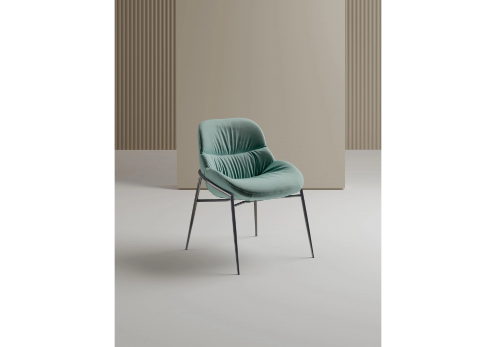 Amelie diseñada por Cuno Frommherz para Bontempi es una silla con estructura de acero lacado o madera, monocasco acolchado y revestida en tejido o piel. Disponible en diferentes acabados.
