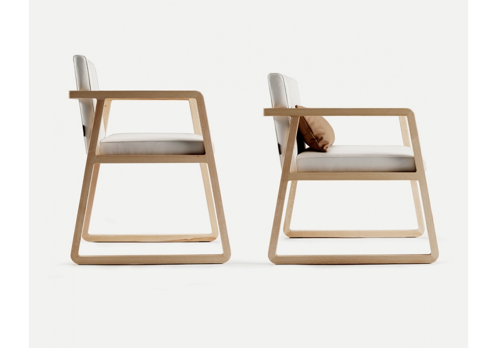 Midori diseñada por Ebualà para Sancal es una silla realizada en madera, asiento acolchado y respaldo revestido en tejido o piel. Disponible en diferentes acabados y en la versión con o sin reposabrazos.
