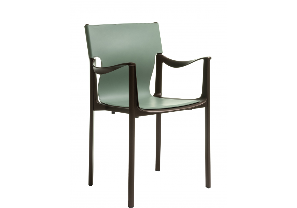 Venice diseñada por Konstantin Grcic para Magis es una silla con brazos con estructura en aluminio inyectado pintado en poliéster o pulido. Asiento y respaldo en piel.
