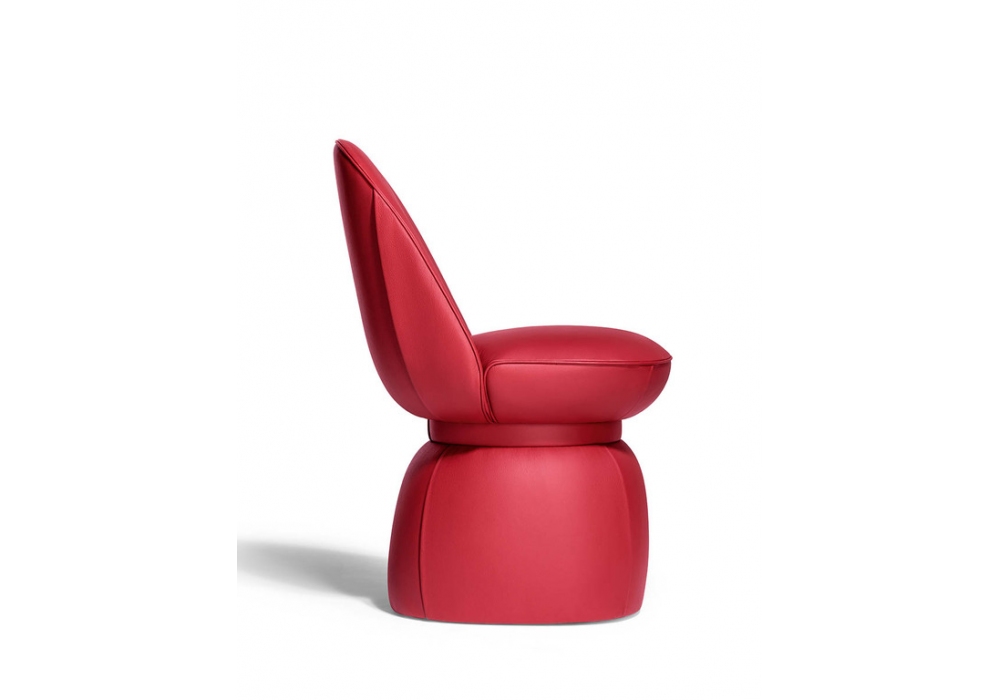 Leplì diseñada por Kensaku Oshiro para Poltrona Frau es una silla en versión fija, con ruedas o giratoria con mecanismo de giro. La estructura está hecha de polimex®, contrachapado de álamo y abedul, con base de cartón kraft y una banda decorativa de madera. El acolchado de espuma de poliuretano y guata de poliéster garantiza comodidad y soporte. La base es de MDF pintado de negro, mientras que las versiones con ruedas incorporan 5 ruedas pivotantes. Tapizado en piel Pelle Frau®, tela o combinación de piel y tela con una banda decorativa, siempre en piel.