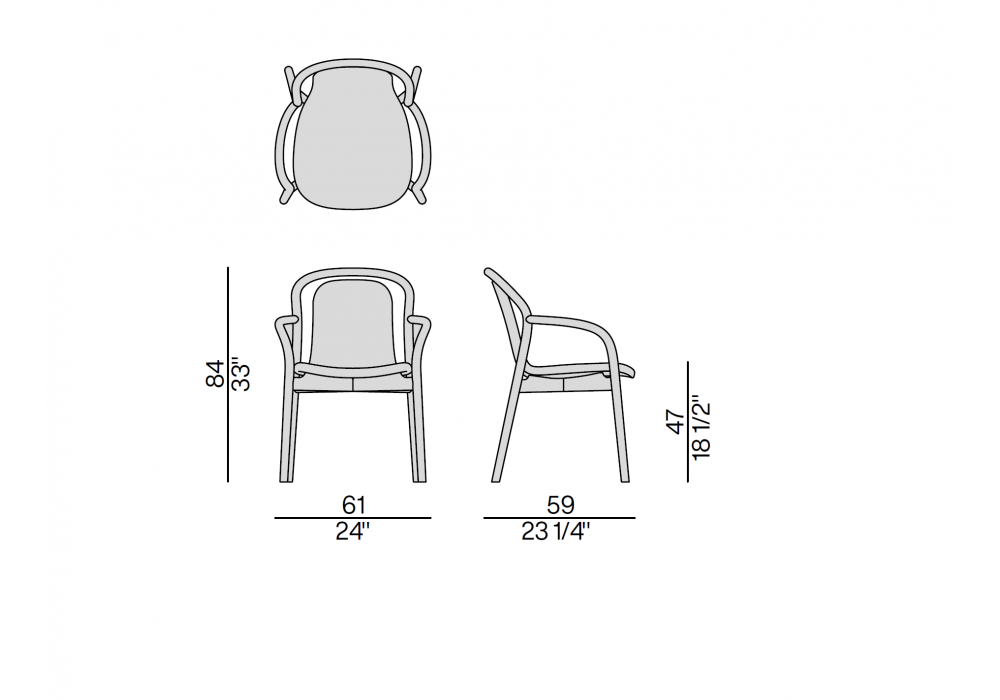 Petra diseñada por Meneghello Paolelli para Porada es una silla con brazos con estructura en nogal canaletta macizo y revestimiento en diferentes tejidos o pieles.