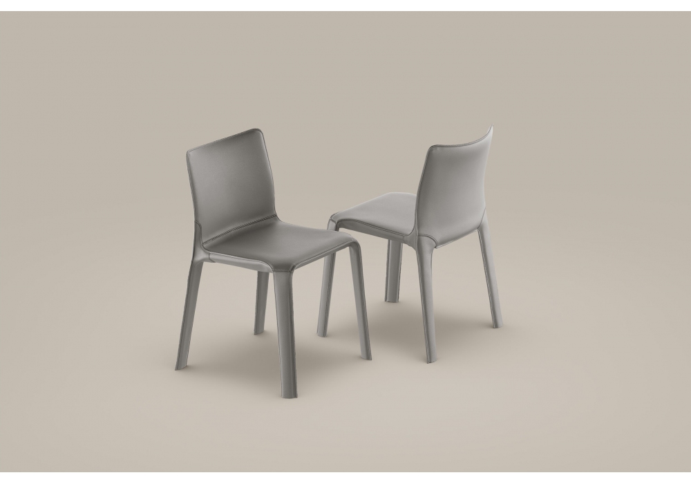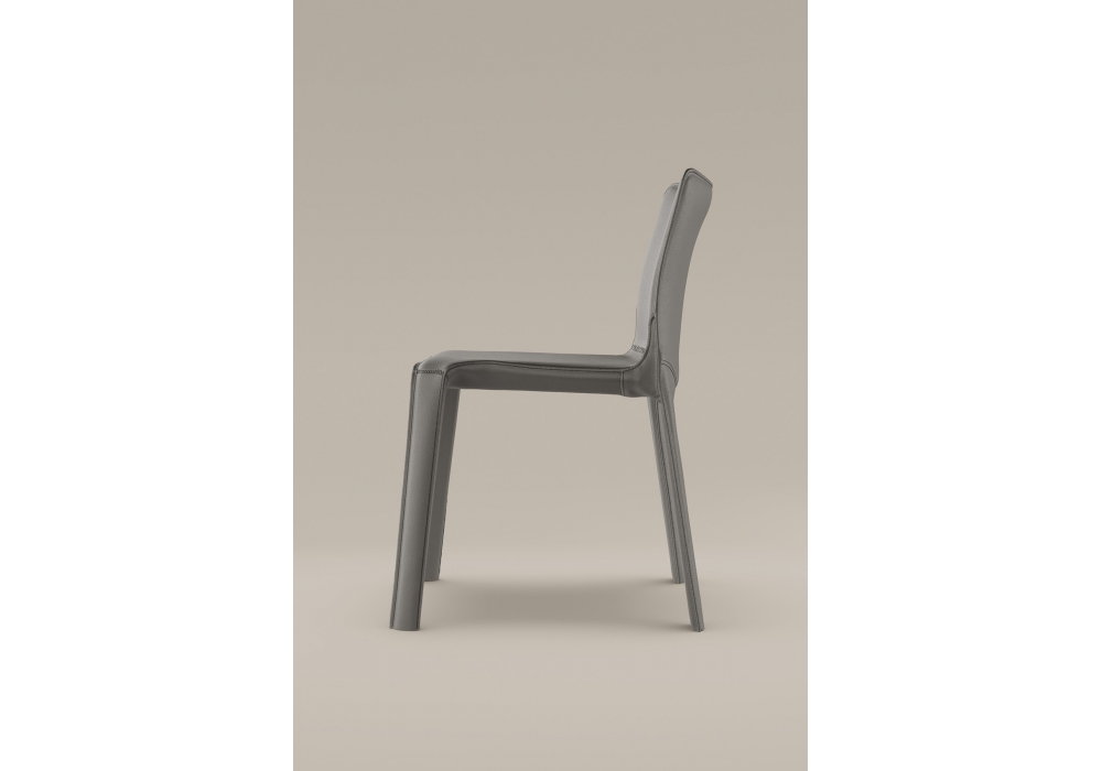 Kagura diseñada por Toshiyuki Yoshino para Bonaldo es una silla con relleno de caucho deformable de alta densidad y tapizado de cuero con costuras y bordes con acabado negro.