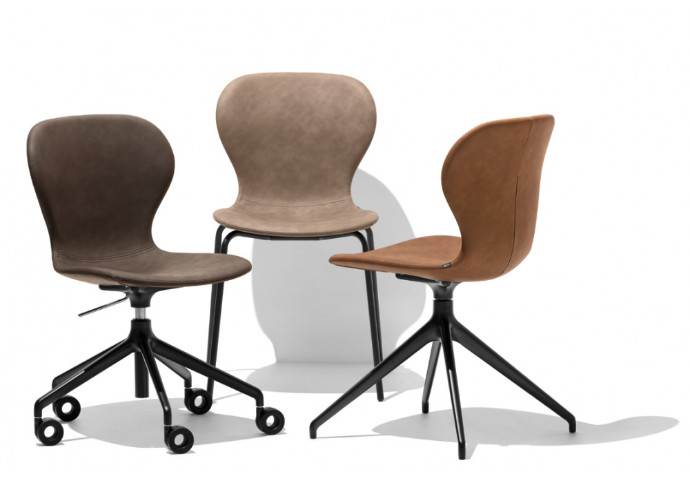Ops! Soft diseñada por Connubia es una silla con estructura de metal pintado y asiento y respaldo acolchados en tejido o piel. Disponible en diferentes acabados y versiones.