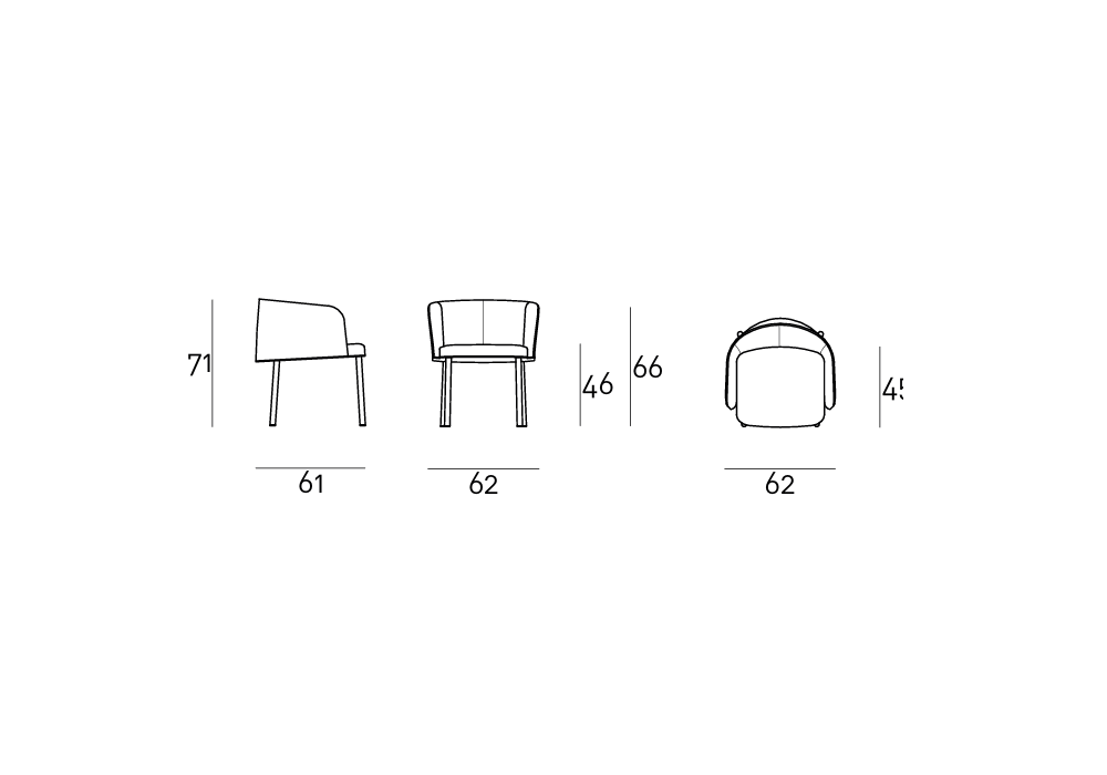 Jam diseñada por Piero Lissoni para Living Divani es una silla con patas de metal pintado y tapizado en diferentes tejidos o pieles.