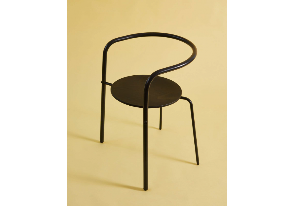 Simplex, diseñada por Oscar Tusquets para BD Barcelona, es una silla de contrachapado de haya teñido en tres colores. La estructura está hecha de tubos de acero del mismo color que la madera.