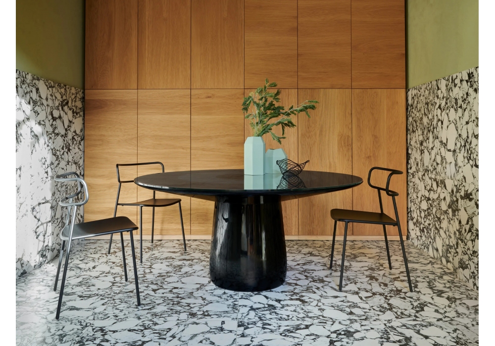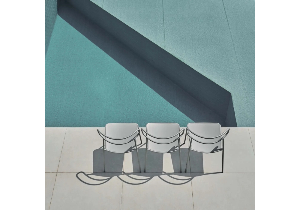 Paloma diseñada por Radice Orlandini para Baleri Italia es una silla apilable con asiento de chapa de acero inoxidable AISI 304 y estructura tubular de acero inoxidable AISI 304, pintada con polvos epoxi en los colores especificados.
