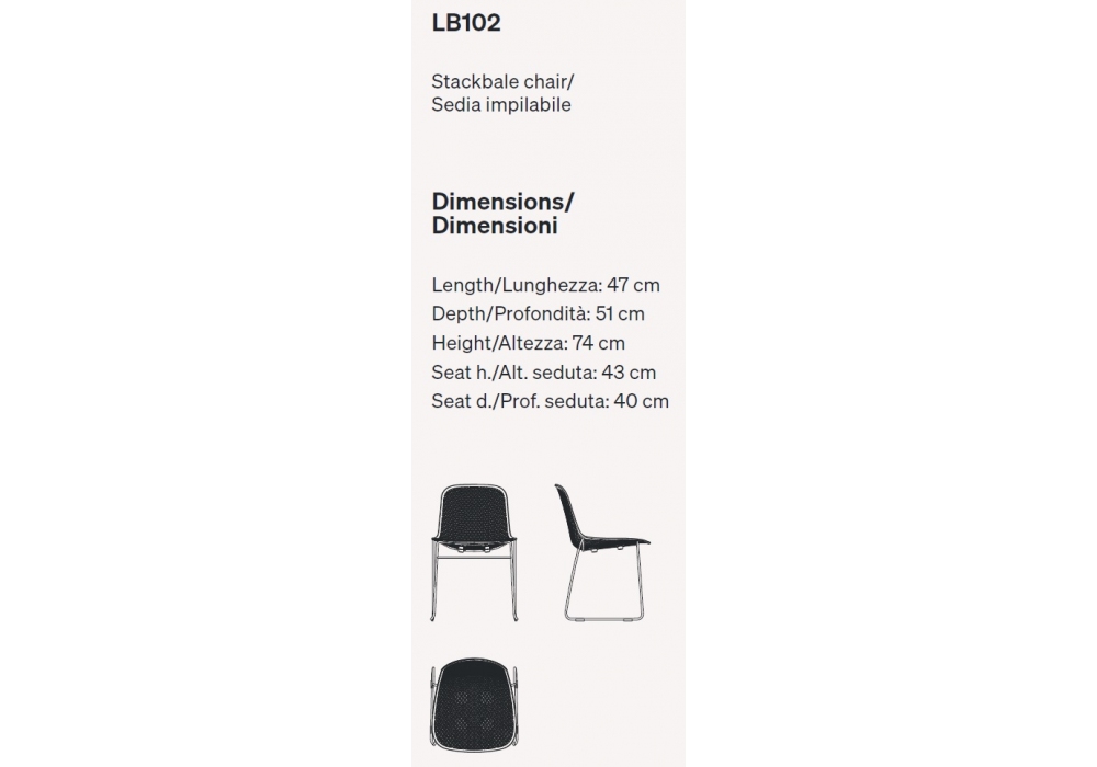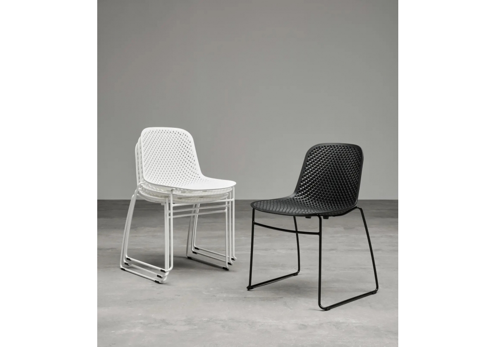 I.S.I. Chair diseñada por Luigi Baroli para Baleri Italia es una silla apilable con carcasa calada de nailon moldeado por inyección, disponible en los colores especificados y caracterizada por una textura en relieve. Patas de acero tubular pintadas del mismo color que la carcasa.