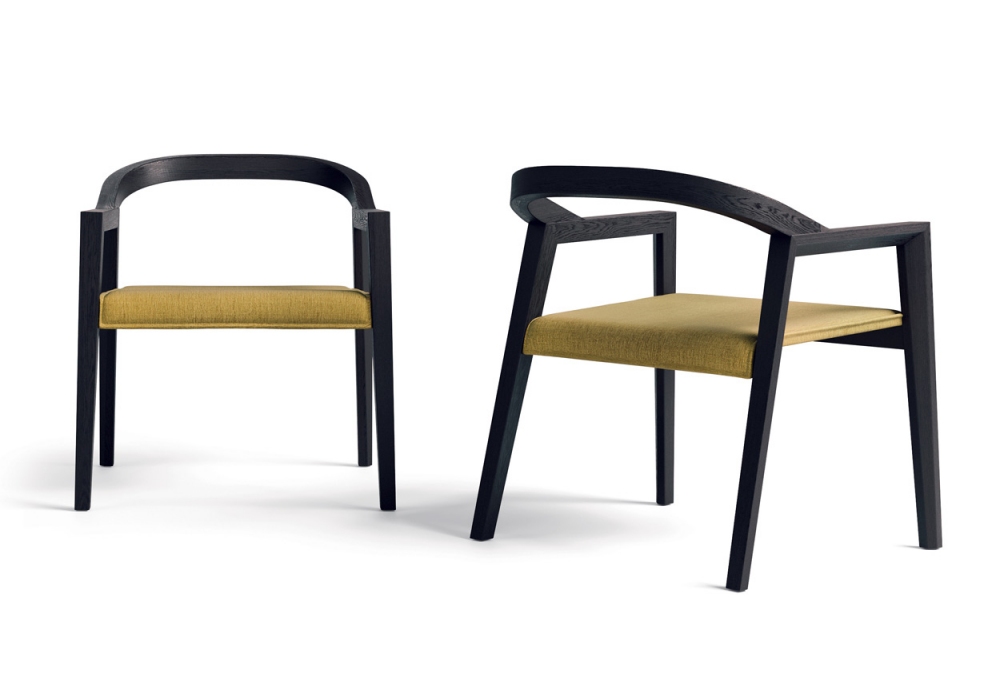 Kelly diseñada por Kico es una silla con reposabrazos realizada con estructura de madera y tapizado en tela o piel.