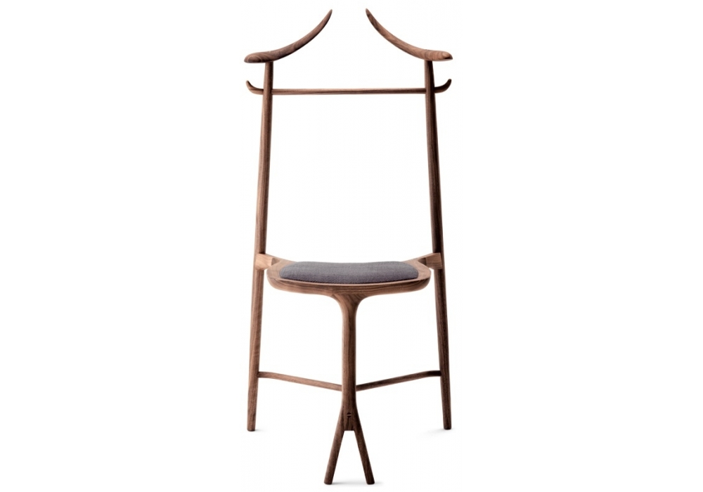Chambre Close by Ceccotti Collezioni is a clothe stand chair made in solid American walnut, seat in upholstered plywood.