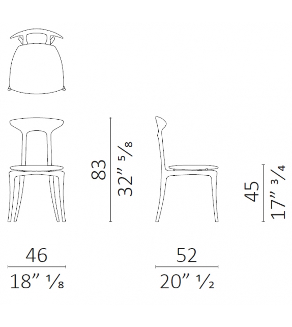 Ma Belle diseñada por Roberto Lazzeroni per Ceccotti Collezioni es una silla realizada en nogal americano macizo y asiento en contrachapado curvo tapizado.
