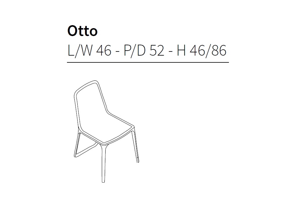 Otto diseñada por Noé Duchaufour y Lawrance para Ceccotti Collezioni es una silla realizada en nogal americano macizo y asiento y respaldo en contrachapado curvo tapizado revestido en tela, cuero o cuero natural.