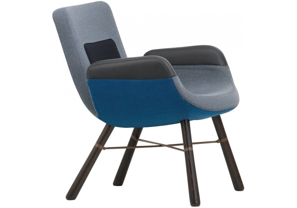 East River Chair by Vitra es una silla con las piernas de roble natural con soportes transversales en polvo de acero con recubrimiento en las piernas de roble marfil u oscuros con los soportes con recubrimiento en polvo de color café. Cubierta: cuero y tela (Laser, Hopsak, Plano) en una variedad de combinaciones de colores coordinados.