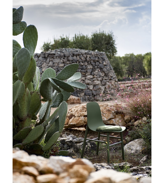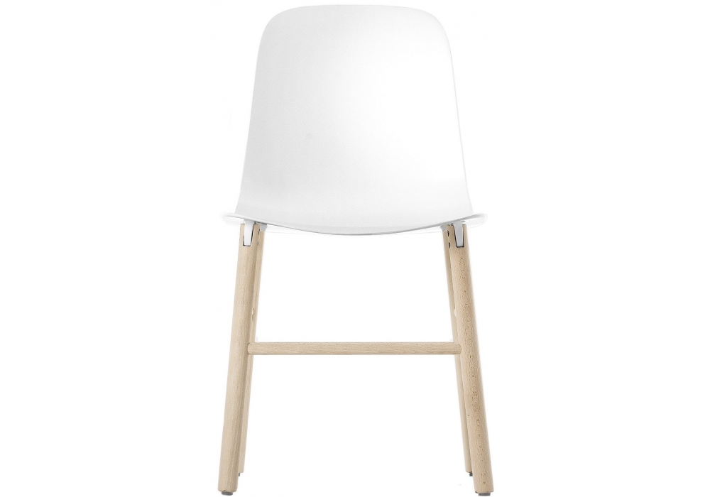 Sharky diseñada por Neuland. Paster & Geldmacher para Kristalia es una silla con carcasa en poliuretano disponible en varios colores y base en madera maciza propuesta en diferentes acabados.