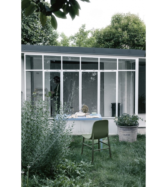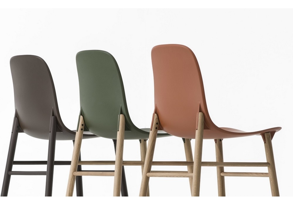 Sharky diseñada por Neuland. Paster & Geldmacher para Kristalia es una silla con carcasa en poliuretano disponible en varios colores y base en madera maciza propuesta en diferentes acabados