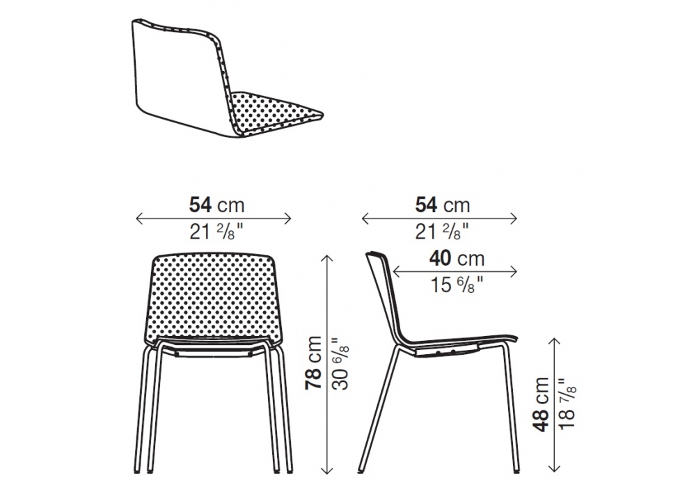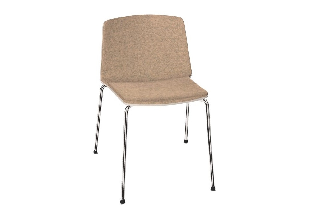 Rama diseñada por Ramos-Bassols para Kristalia es una silla con cuatro patas en acero disponible en diferentes acabados, carcasa en polipropileno con revestimiento frontal en tejido o piel.