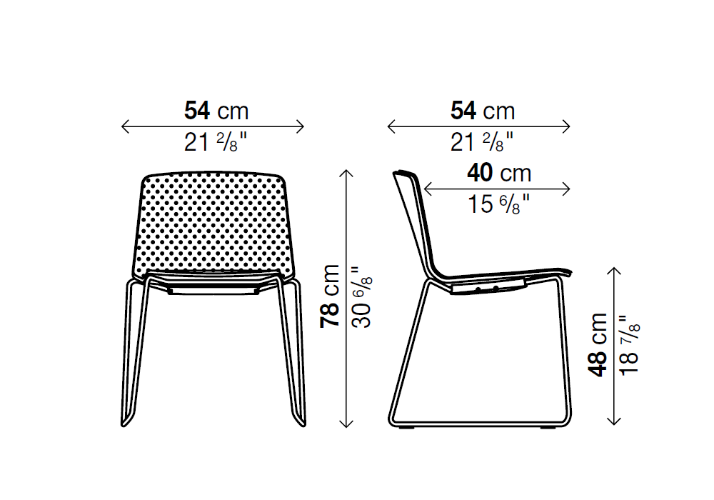 Rama diseñada por Ramos-Bassols para Kristalia es una silla con estructura de trineo de acero disponible en diferentes acabados, carcasa de polipropileno o madera con tapizado frontal en tela o piel.