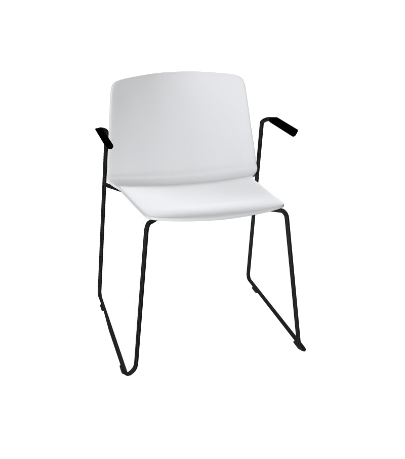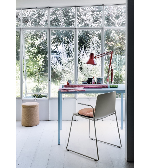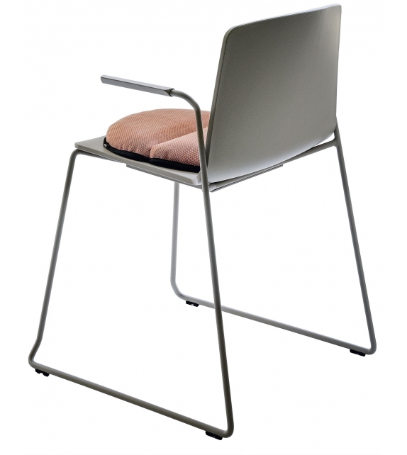 Rama diseñada por Ramos-Bassols para Kristalia es una silla con estructura su trineo y reposabrazos en acero disponible en diferentes acabados y carcasa propuesta en polipropileno.